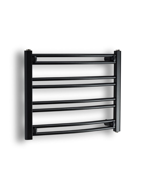 Amanda böjd Matt Svart är en helt ny handdukstork som är tänkt att passa i mindre badrum där inte värmeavgivningen är prioritet utan istället funktionen med lätta att hänga upp handdukar som en stor fördel.