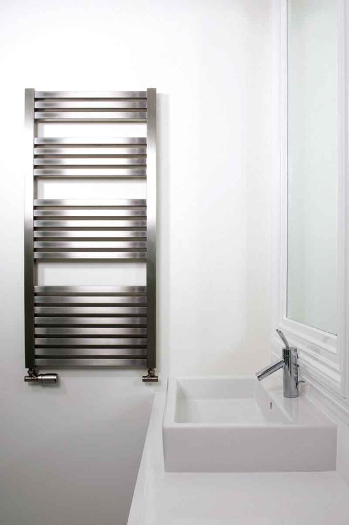 Handdukstorken som är av mycket hög kvalitet är tillverkad i vanligt stål dvs den passar bara för uppvärmning med vattenventil i slutna värmesystem eller med elpatron.